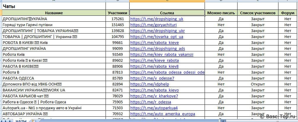 Каналы и чаты Telegram - Украина (70 000 шт)