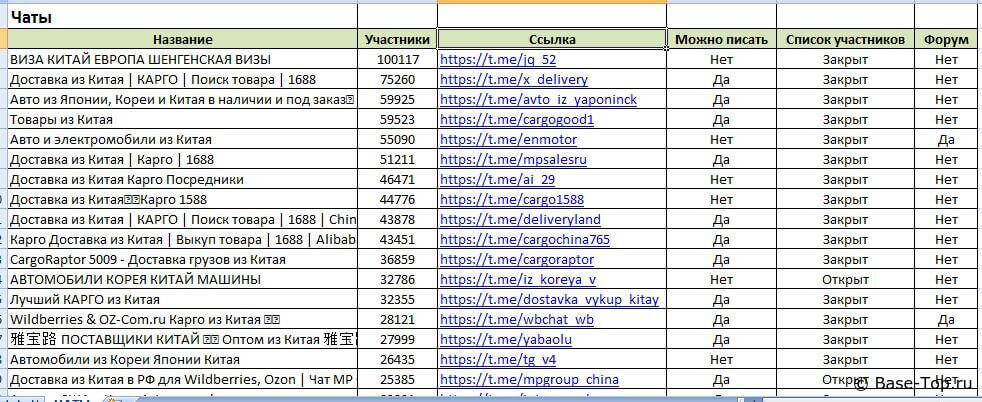 Каналы и чаты Telegram - Китай (5000 шт)