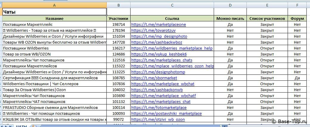Каналы и чаты Telegram - Маркетплейсы (10 000 шт)