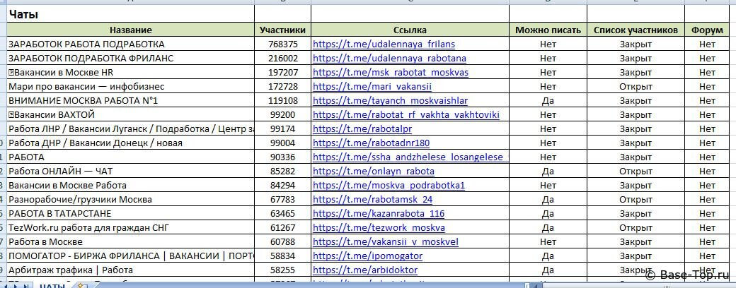 Каналы и чаты Telegram - Работа и Вакансии (25 000 шт)
