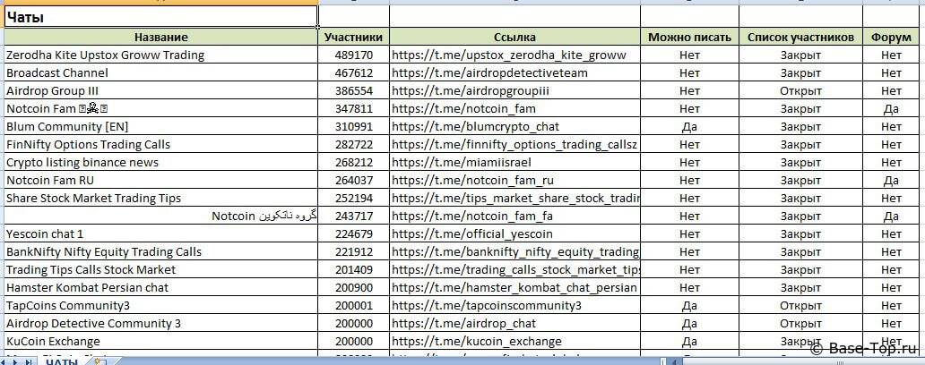 Чаты Telegram - Криптовалюты (150 000 шт)