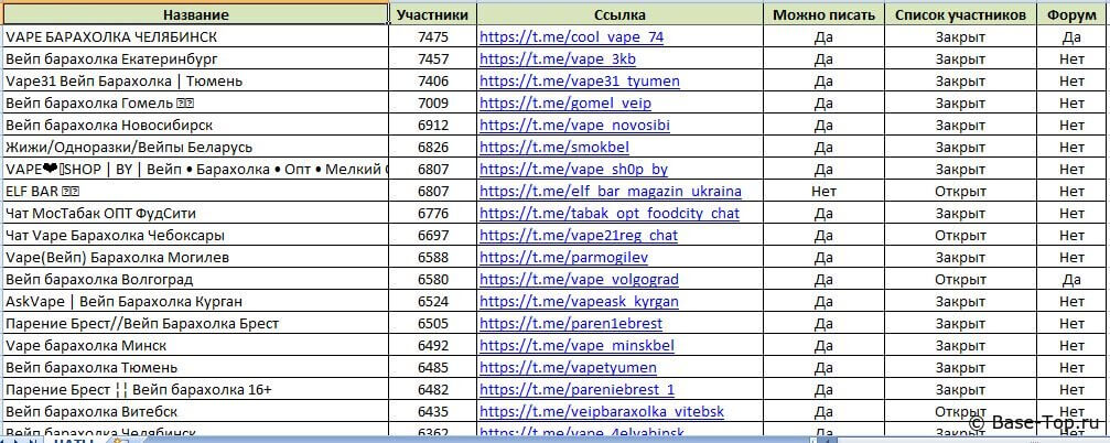 Каналы и чаты Telegram - Вейп Шопы (4000 шт)