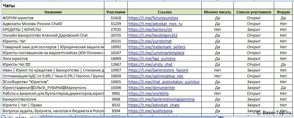 Каналы и чаты Telegram - Юридические (4200 шт)