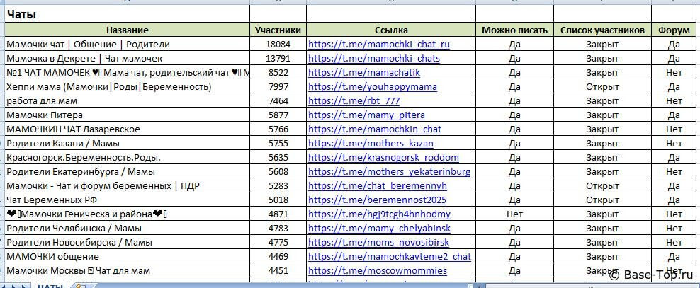 Каналы и чаты Telegram - Мамы, Декрет (2000 шт)