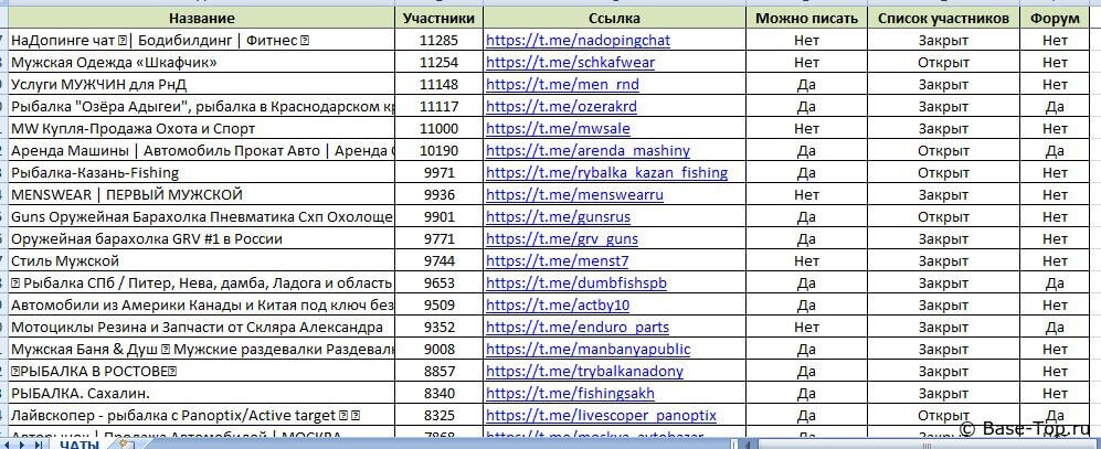 Общее количество каналов + чатов Телеграм в базе: 10 000 шт.